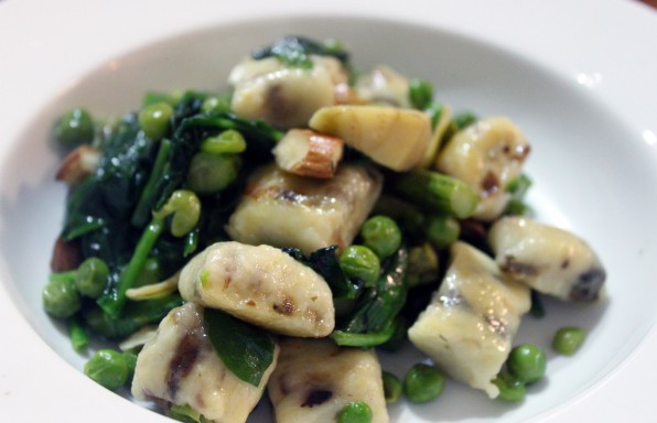The zing of fresh lemon enhances both the peas' sweetness and the natural flavor of the spinach. The whole quick, creamy dish is bolstered by soft pillows of potato gnocchi.